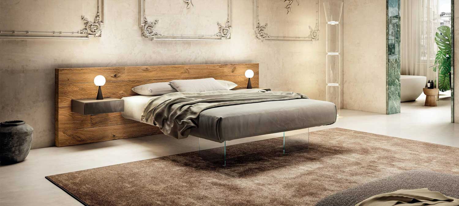 Grâce à la transparence absolue du verre trempé qui fait office de support, le lit Air de Lago, semble léviter. Le cadre du lit Air est posé sur quatre pieds en verre presque invisibles, qui apportent une grande sensation de légèreté.