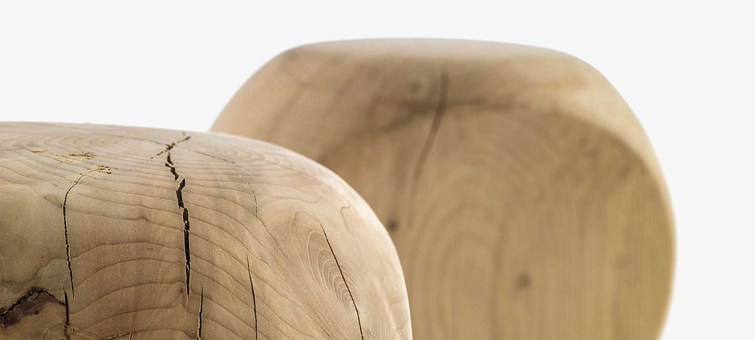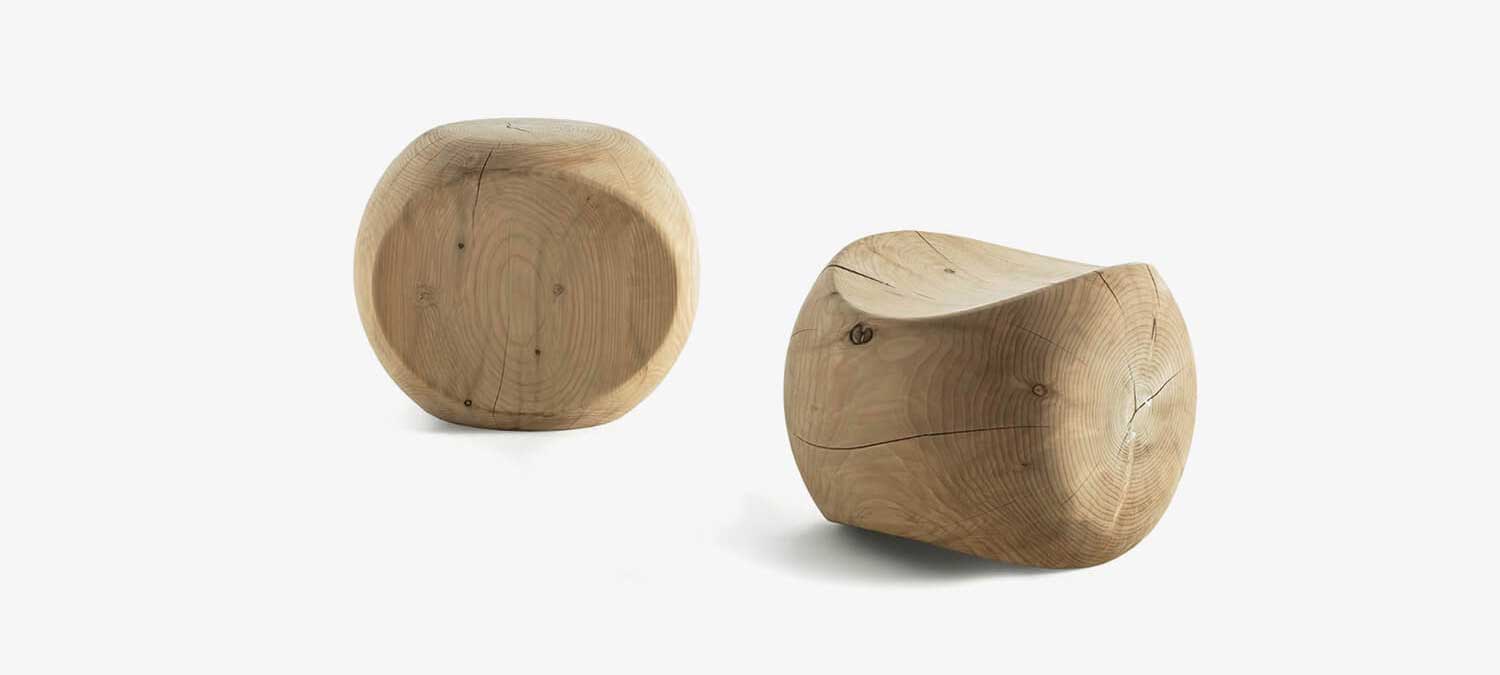 Le tabouret Amedea, dessiné par Benno Vinatzer est fabriqué à partir d’un seul bloc de cèdre massif. Amedea peut être utilisé sur chacune de ses faces.