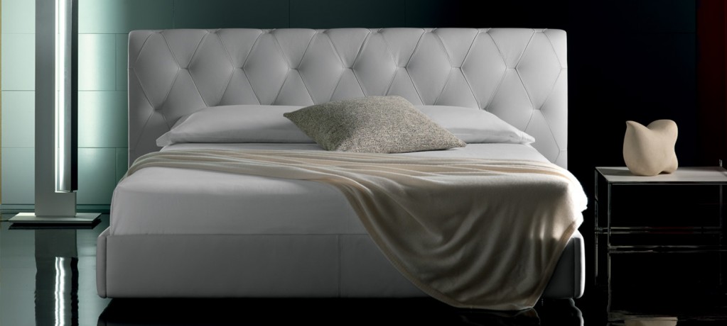 Sur la large tête du lit, entièrement revêtue de cuir Pelle Frau®, le capitonné moderne crée un décor simple et harmonieux. Des coutures délicates, exécutées avec une habileté artisanale, tracent de grands dessins losangés. Les pieds cylindriques sont en aluminium laqué noir. Bluemoon peut accueillir un grand compartiment de rangement.