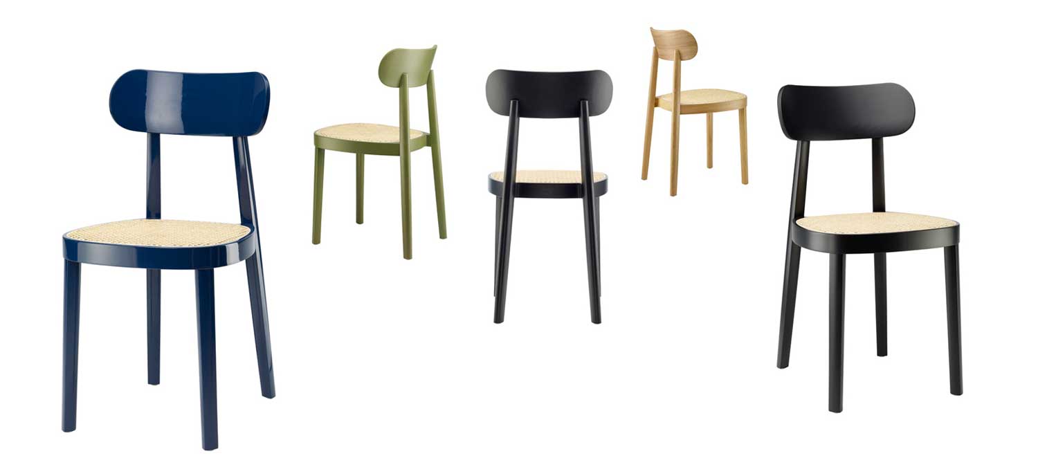 Minimaliste et authentique, la chaise 118 perfectionne le l’héritage de Thonet. Faisant référence au modèle 214, la chaise Thonet originale, le cadre de l’assise 118 est composé d’une seule pièce courbée et tendu d’un cannage viennois fait main.
