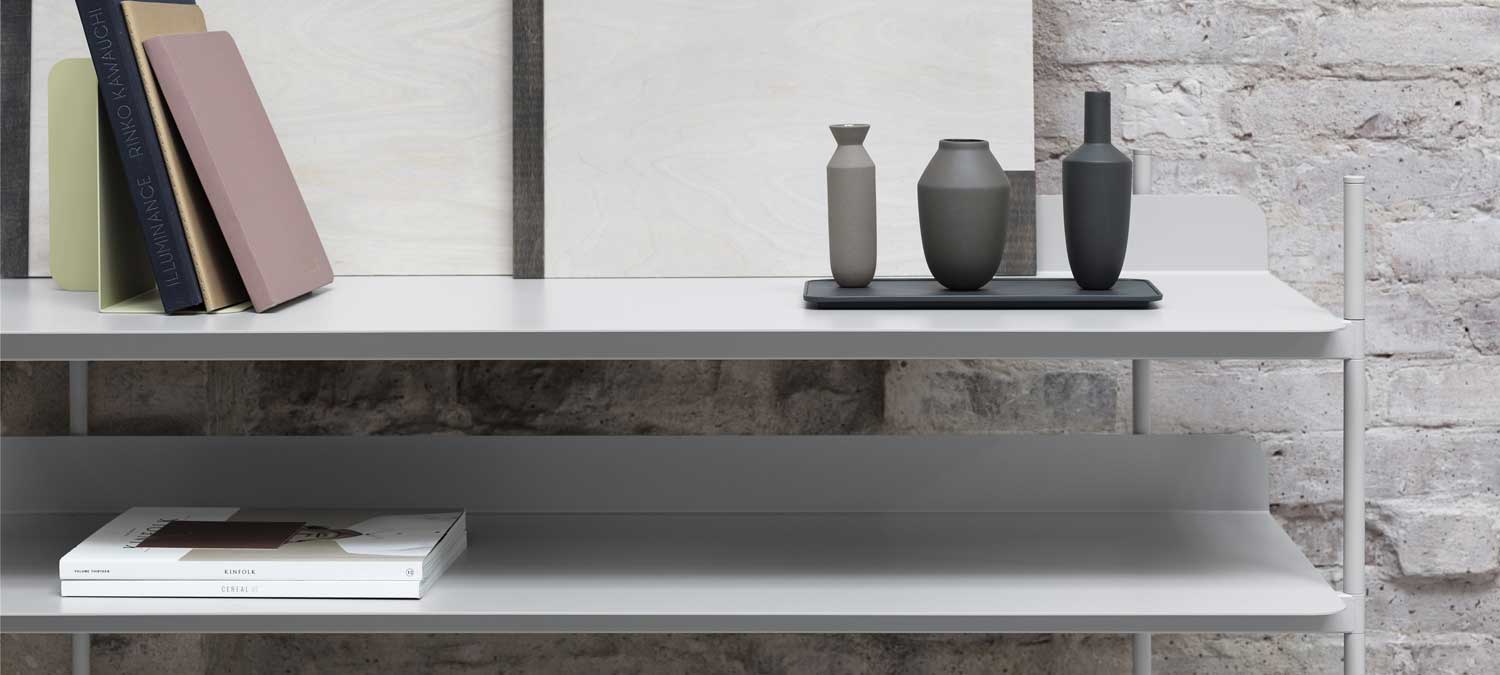 Dessinée par Cecilie Manz, la bibliothèque Compile est un concept fonctionnel et flexible. Compile Shelving est composé d’une étagère et de quartes tubes de trois hauteurs différentes, qui peuvent être assemblés.