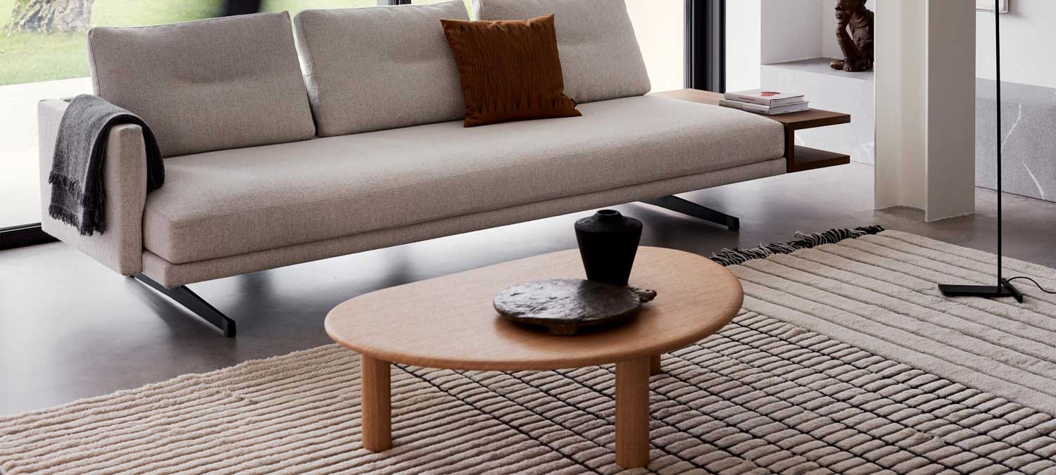 Les formes douces et sculpturales de Ghia insufflent un sentiment d’harmonie et de calme. Les bases sont disponibles en trois hauteurs, soutenues par un totem central sculptural, ou des pieds au profil légèrement asymétrique.