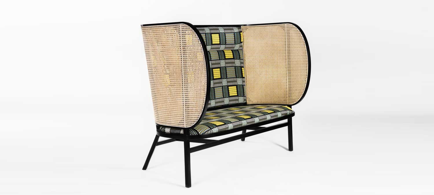 Front signe pour Wiener GTV, le canapé Hideout, qui conjugue confort et raffinement, renouant avec originalité le style de la marque. Hideout a une structure en hêtre massif cintré à vapeur, les côtés de ce canapé haut sont en paille de Vienne.