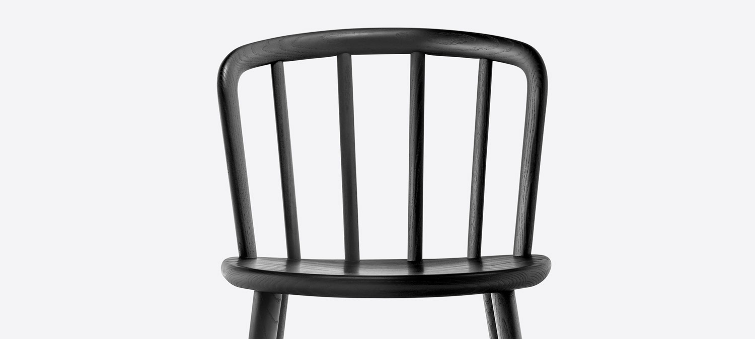Nym est une collection de sièges en frêne massif qui revisite les chaises Windsor de manière contemporaine. Chaise à dossier cintré en bois courbé, Nym est disponible en bois naturel, bois teinté ou en version laquée.