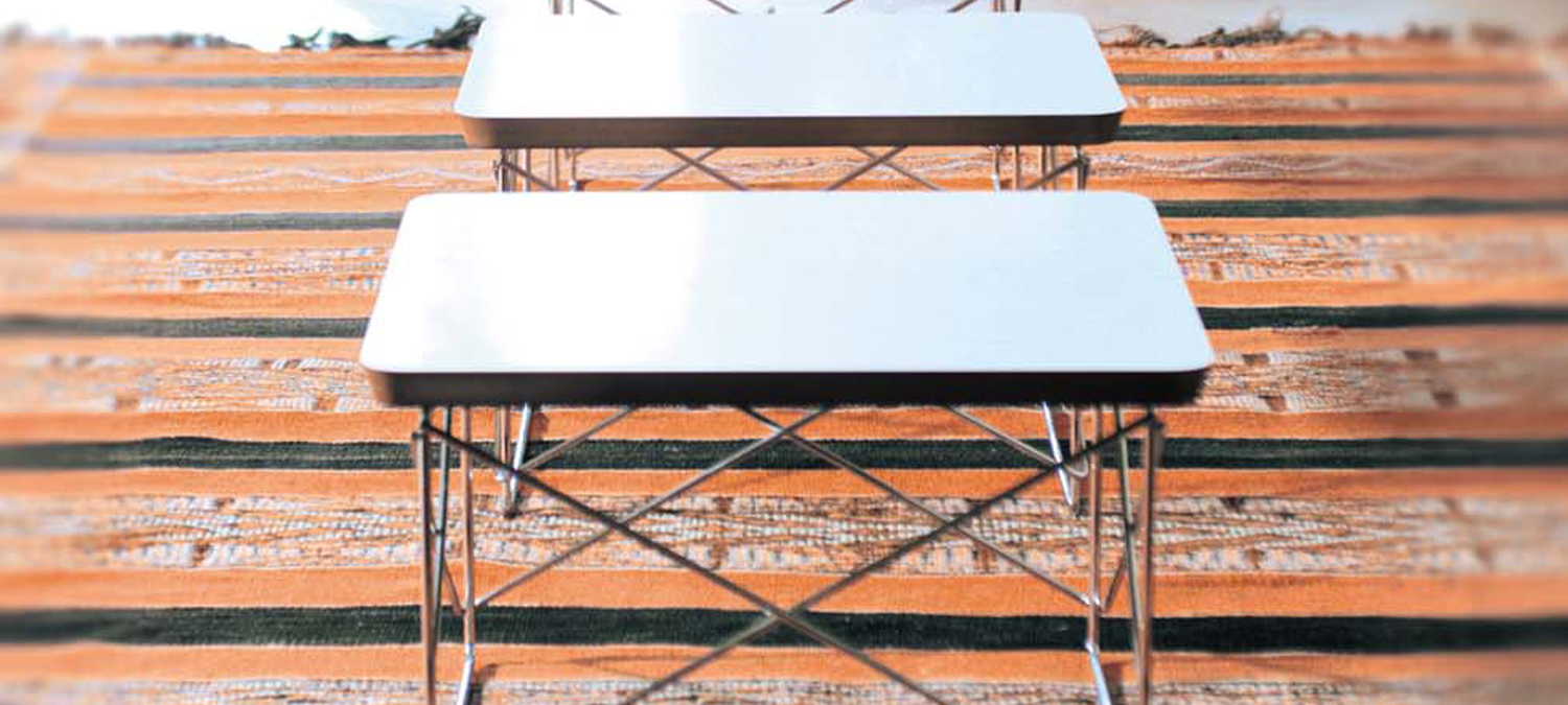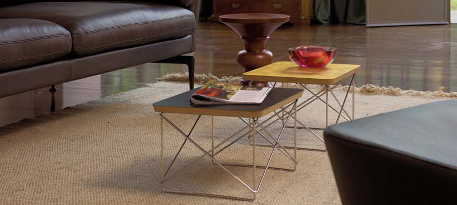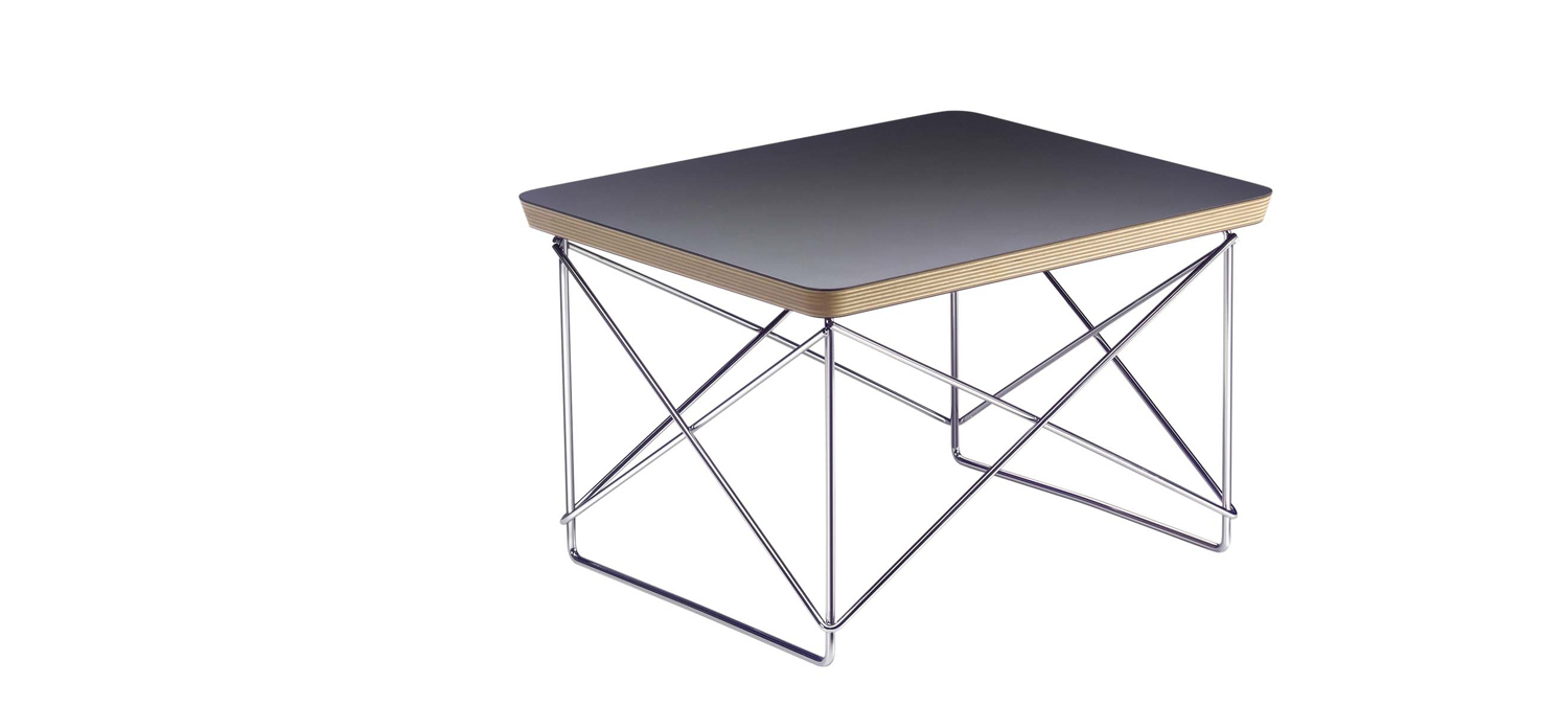La LTR a été conçue par Charles & Ray Eames comme une petite table d’appoint permettant de nombreuses variations et utilisées sous différentes formes dans la Eames House. Collection Vitra Design Museum.