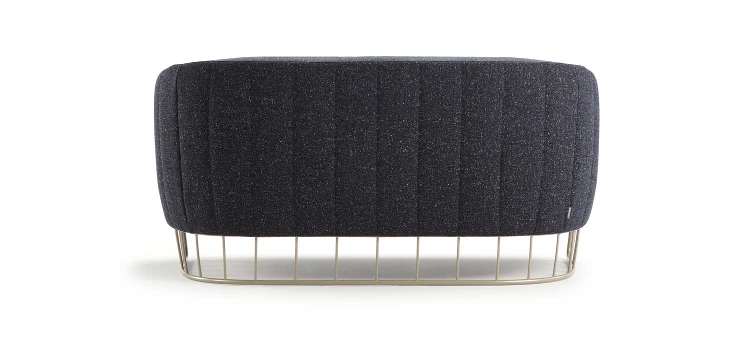 Le cabinet d’architecture suédois Note a réinterprété pour Sancal le fauteuil Marie-Antoinette. Le petit canapé boudoir Tonella est composé d’une assise tonneau capitonnée qui repose sur un piétement métallique.