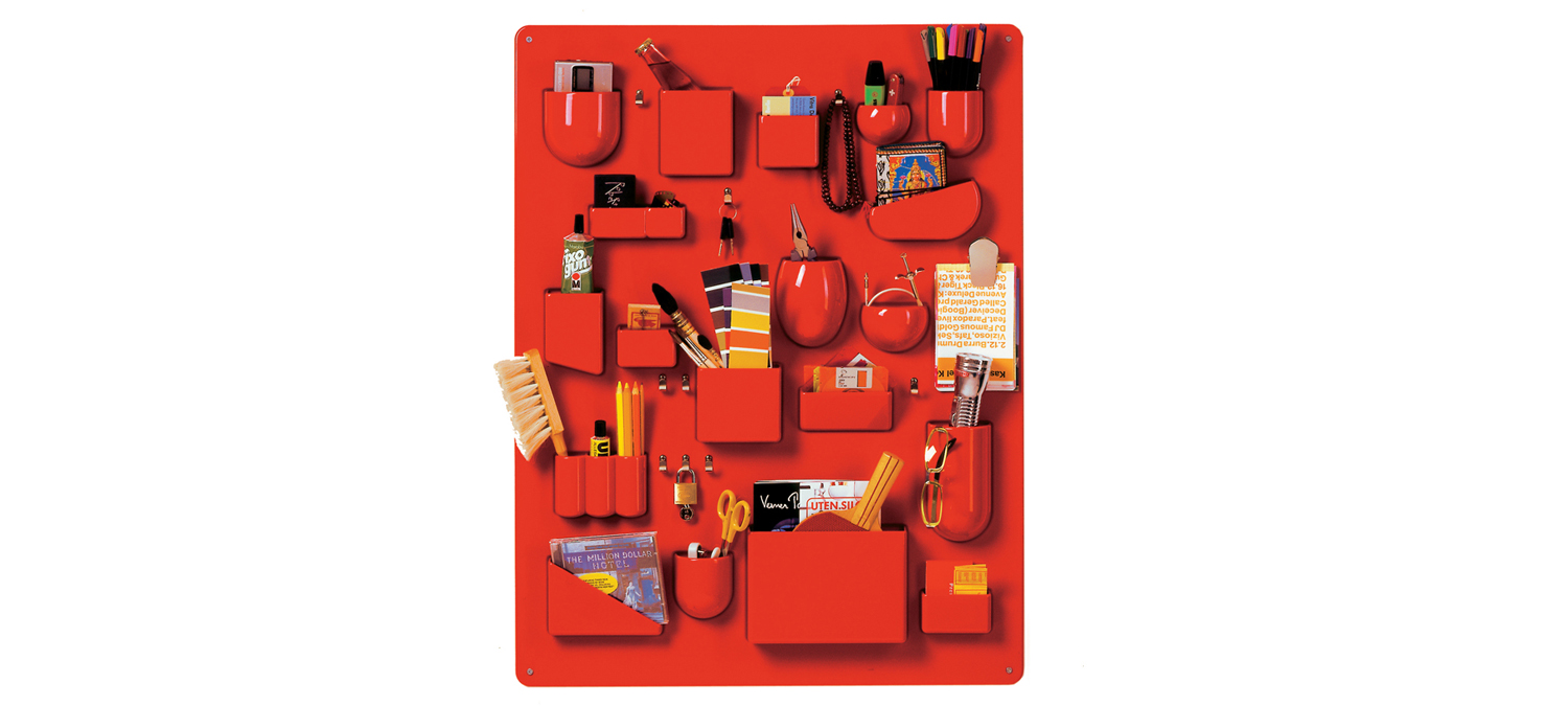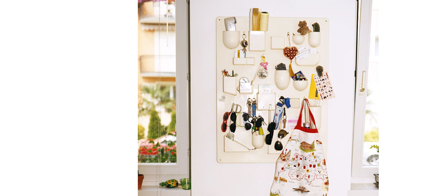 Avec ses réceptacles de formes et de tailles variées, ses crochets et ses pinces métalliques, l’Uten.Silo est un organiseur pour bureaux, cuisines, ateliers, salles de bain, chambres… Disponible dans la version originale de 1969 – Uten.Silo I – ou dans la version plus petite conçue en 1970 – Uten.Silo II.