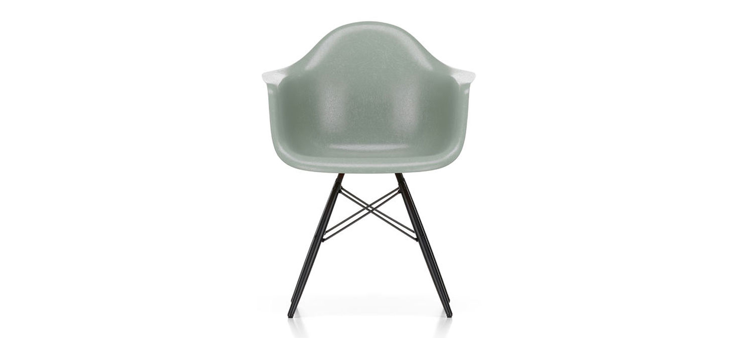 Pour le fauteuil DAW de Charles & Ray Eames ont combiné la coque d’assise aux formes organiques à un piétement à quatre pieds en bois. L’association de la coque en fibre de verre et du bois confère à la DAW un aspect chaleureux.