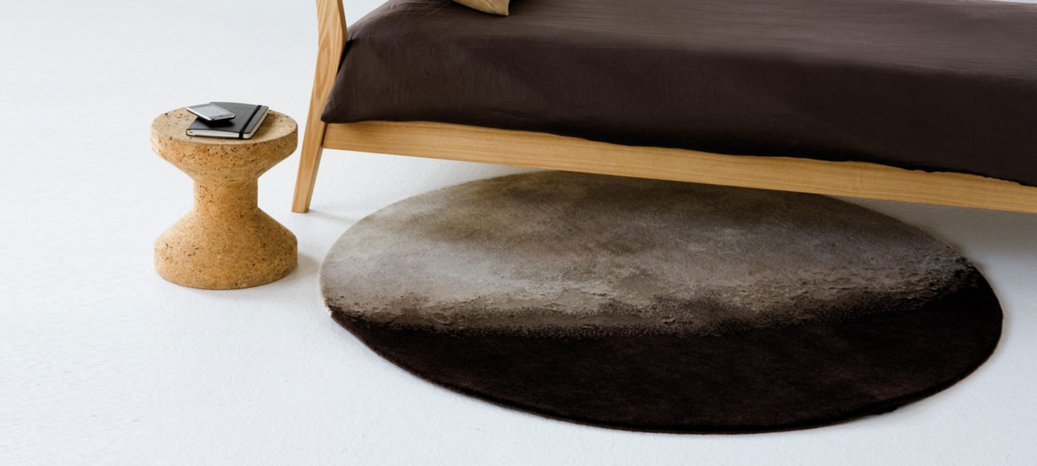 Le tapis Luna est une réédition des années 80 de l’artiste Oscar Tusquets. Les nouveaux procédés photographiques ont permis de reproduire une image parfaite de la lune en phase croissante sur un tapis circulaire.