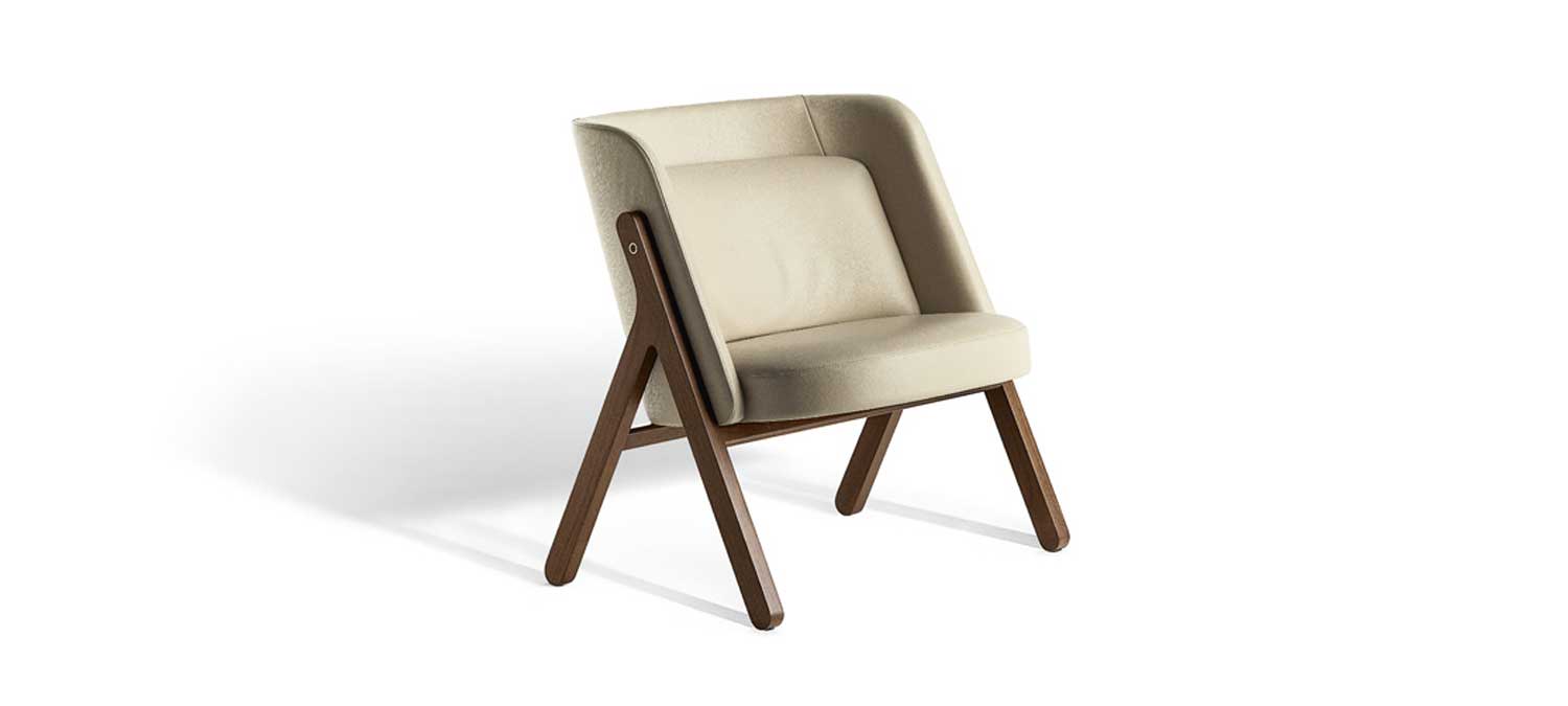 La collection REN de Poltrona Frau comprend un fauteuil et un petit canapé. Le fauteuil Ren est composé de deux symboles chinois, en noyer Canaletto, la coque est en hêtre cintré.